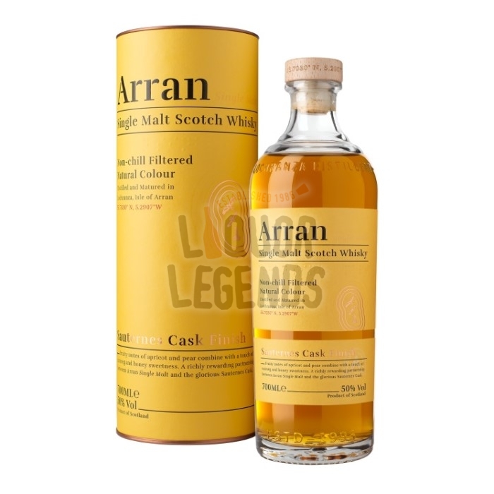To achieve this rich partnership, our traditional Arran Single Malt is matured in oak casks for eight years and is then 'finished' in a selection of Sauternes wine casks.