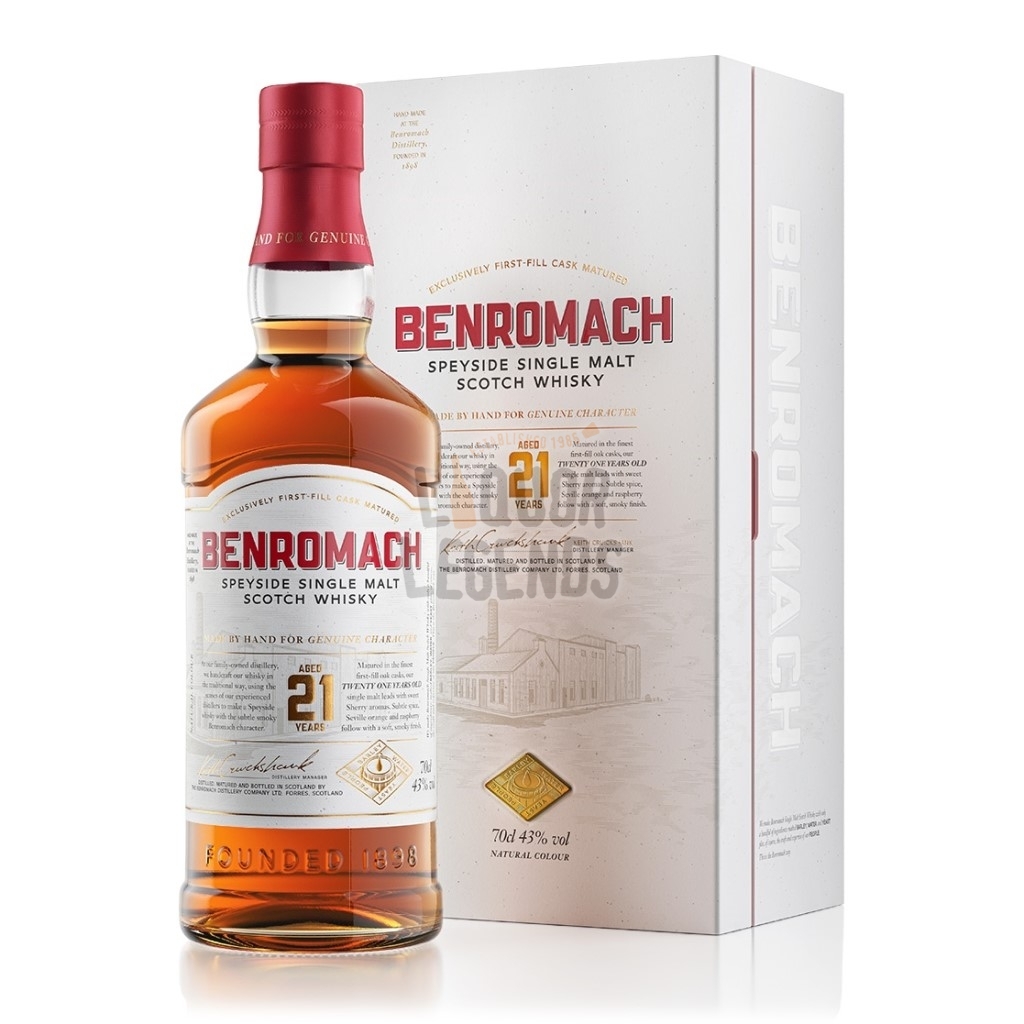 Matured in the finest hand-selected first-fill oak casks, this TWENTY ONE YEAR OLD single malt delivers sweet Sherry aromas. Subtle spice, Seville orange and raspberry follow with a soft smoky finish.