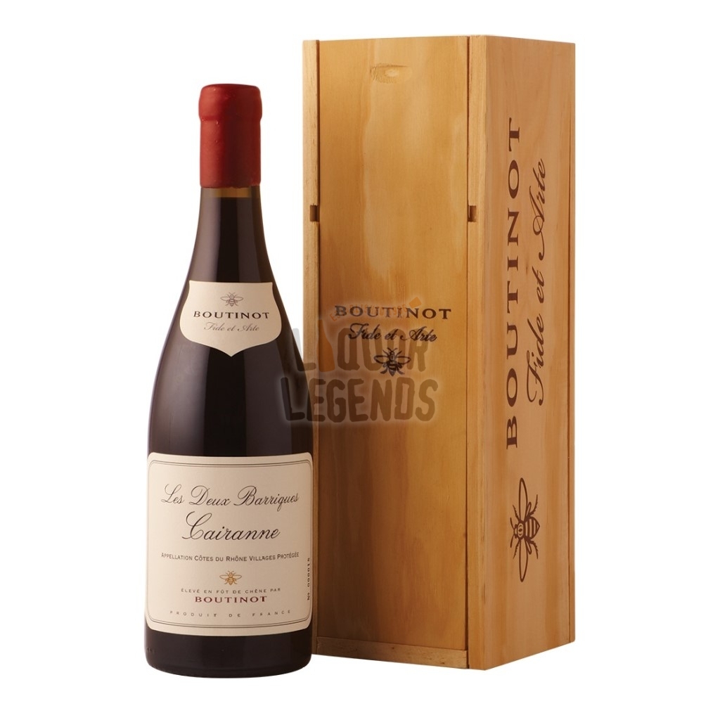 Made from low-yielding old vine Grenache and Carignan Noir, with Syrah and Mourvèdre grown in the hills above the village of Cairanne in the southern Rhône Valley. Hand-picked grapes are vinified only by naturally occurring yeasts, aided by manual pigeage and gentle remontage in open topped oak vats (tronconique). Les Deux Barriques is matured for up to 24 months in French oak demi-muids (600 litre barrels); the wine is neither fined or filtered before bottling at Domaine Boutinot in Cairanne.