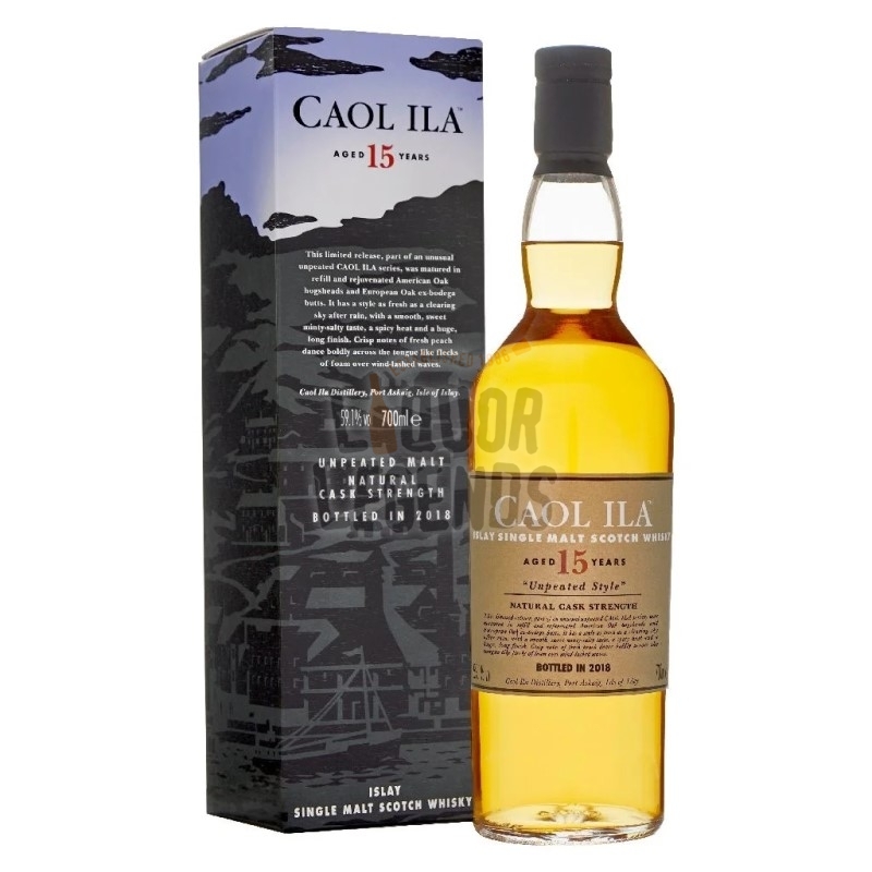 Caol Ila 15 Year Old is the first of thirteen annual releases in a unique series of unpeated whiskies. This single malt was matured in refill and rejuvenated American Oak hogsheads and European Oak ex-bodega butts. An exceptionally grown-up whisky with with a smooth, sweet minty-salty taste, a spicy hear and a huge, long finish.