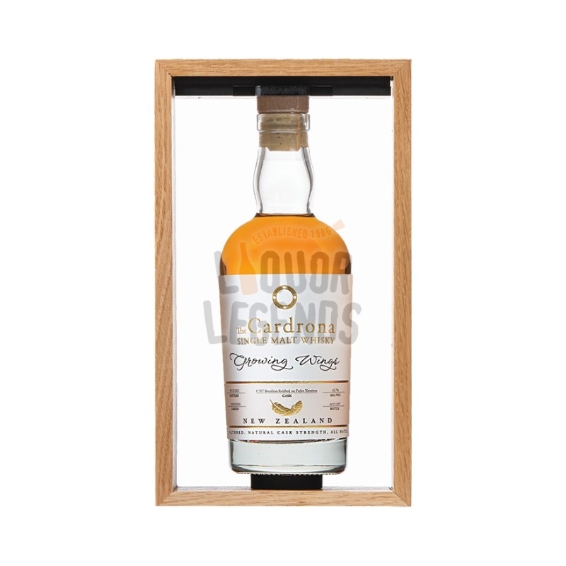 This exclusive single cask edition of The Cardrona Single Malt Whisky 'Growing Wings' is a unique blend of three ex-bourbon barrels, finished together in a 500-litre Pedro Ximénez butt. It has been matured for five and a half years and bottled at its natural cask strength.